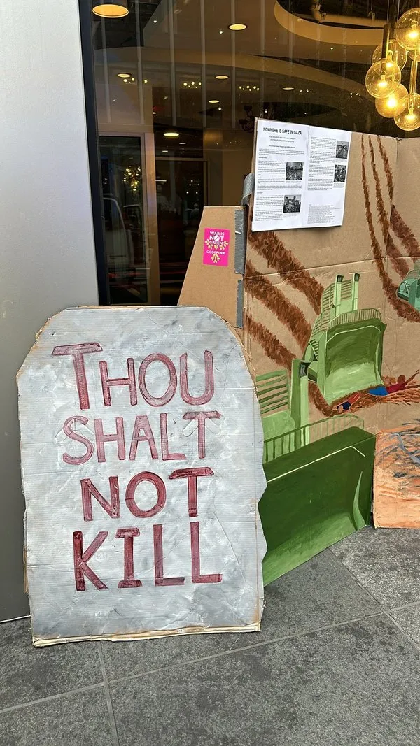 Sokaklarda sık sık bu yönde pankartlarla karşılaşılıyor. Protestocular ellerinde “İsrail’i silahlandırmayı bırakın” ve “Gazze’deki soykırımı durdurun” pankartları taşıyor.